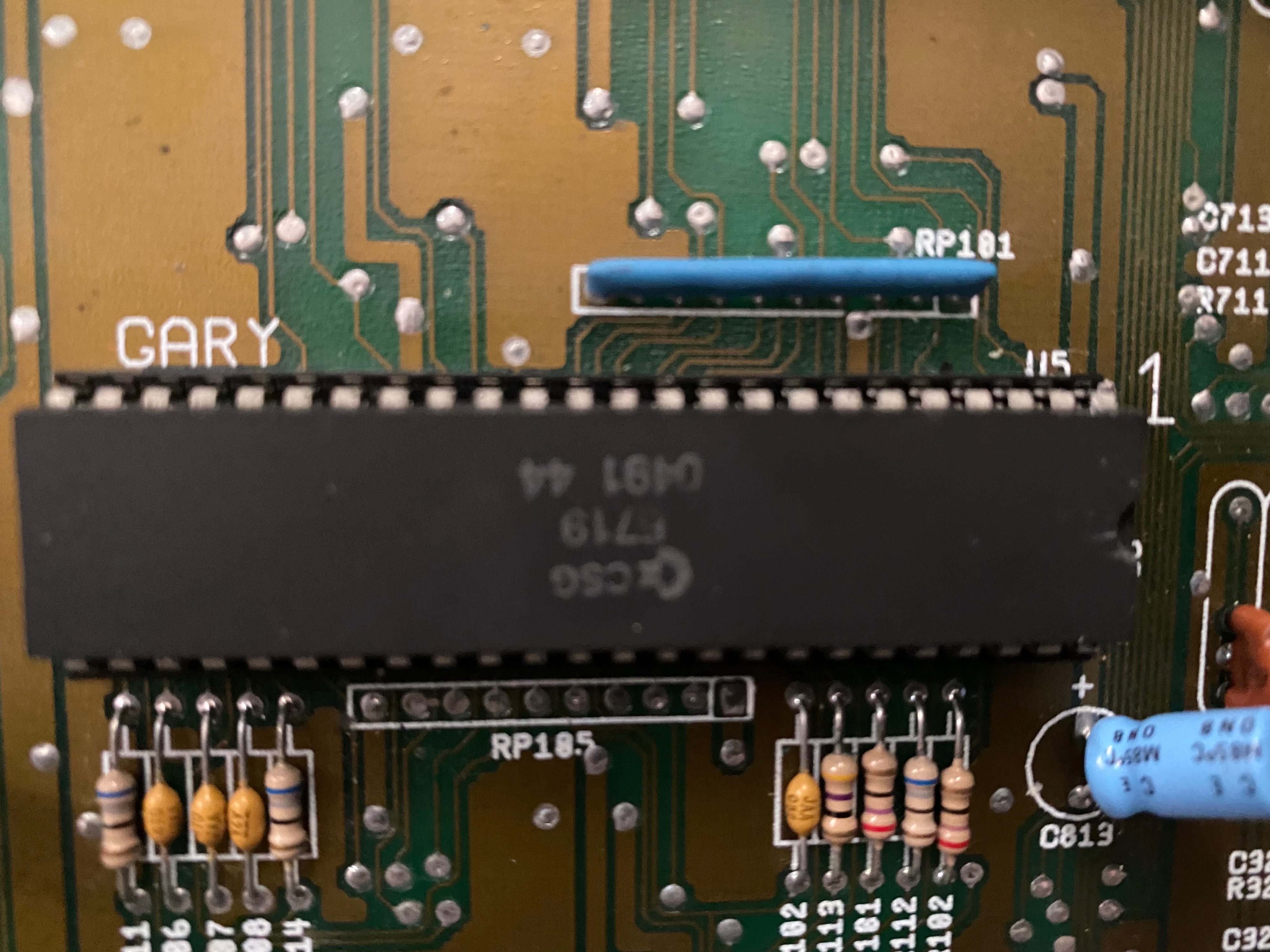 So, back to the reset circuit. The input from the 555 and keyboard goes into a chip called Gary (short for Gate Array). This then fires the HLT and RST lines for all the other chips. I figured Gary may be bad so I swapped out this chip for a known good one, as well as the CPU for good measure. No joy.