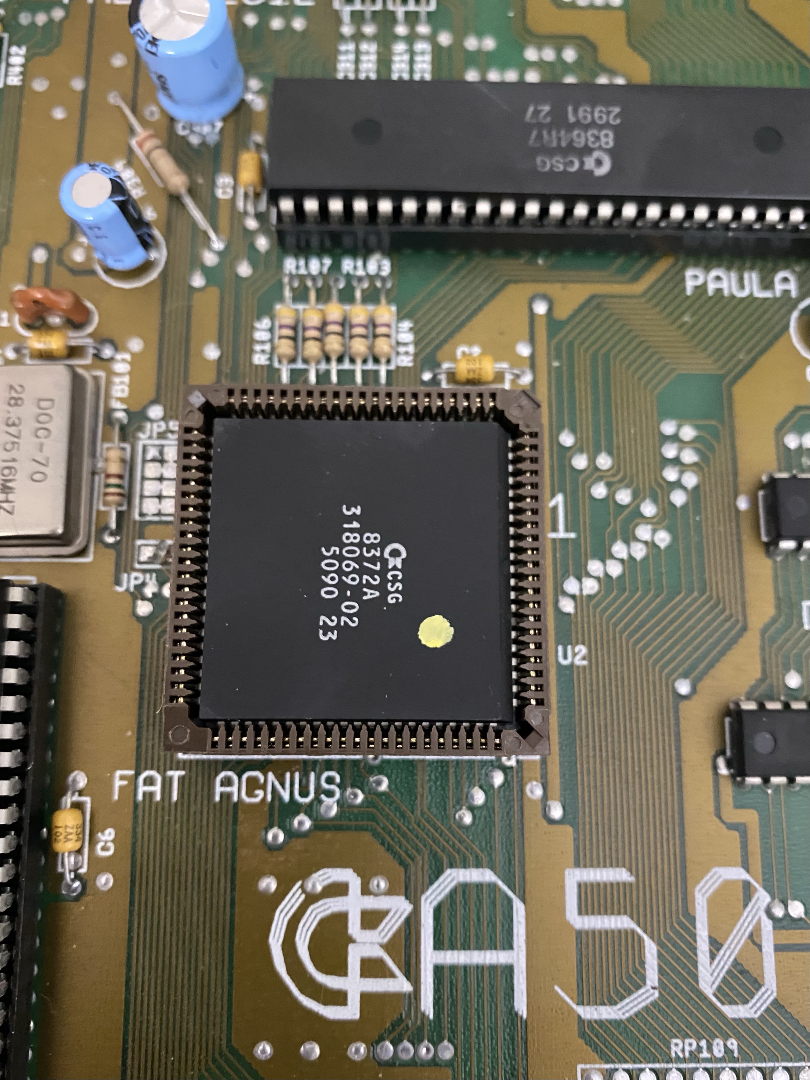 I was a little worried that it may be the Fat Agnus (Address Generator Chip) that is bad, which would not be good because I don’t have a spare of that version, it is expensive to replace and more often than not the 30 years old socket breaks when pulling it.