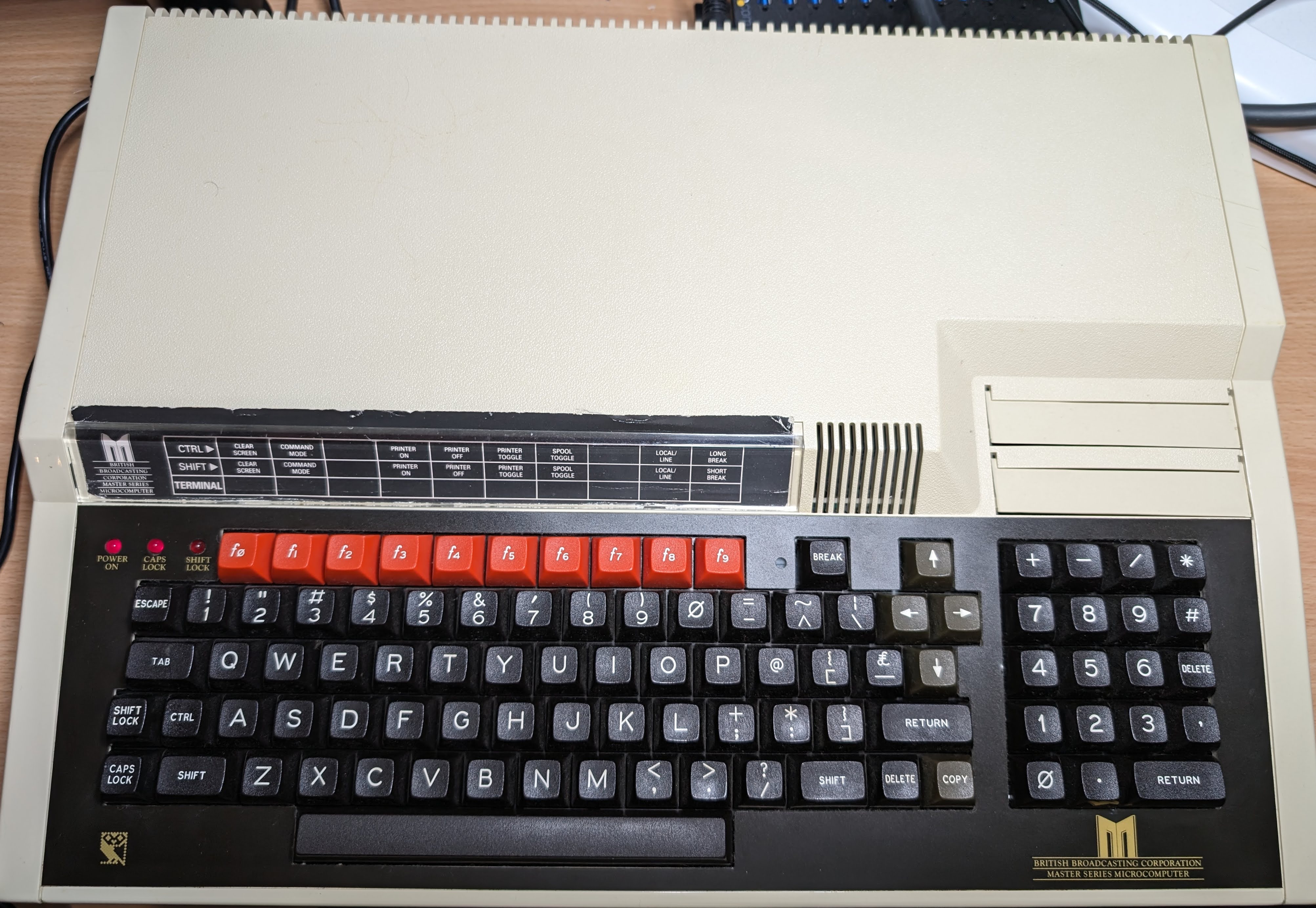 I was recently chatting to a local friend about the course I’m setting up to teach local kids BBC BASIC and Logo. He mentioned that he had his brother’s boxed BBC computer in the loft and that he would donate it to me so that I had the final machine needed for the course. I’m going to be helping him with some work on his retro collection in return. What I didn’t realise at the time, was that the machine was a BBC Master 128!