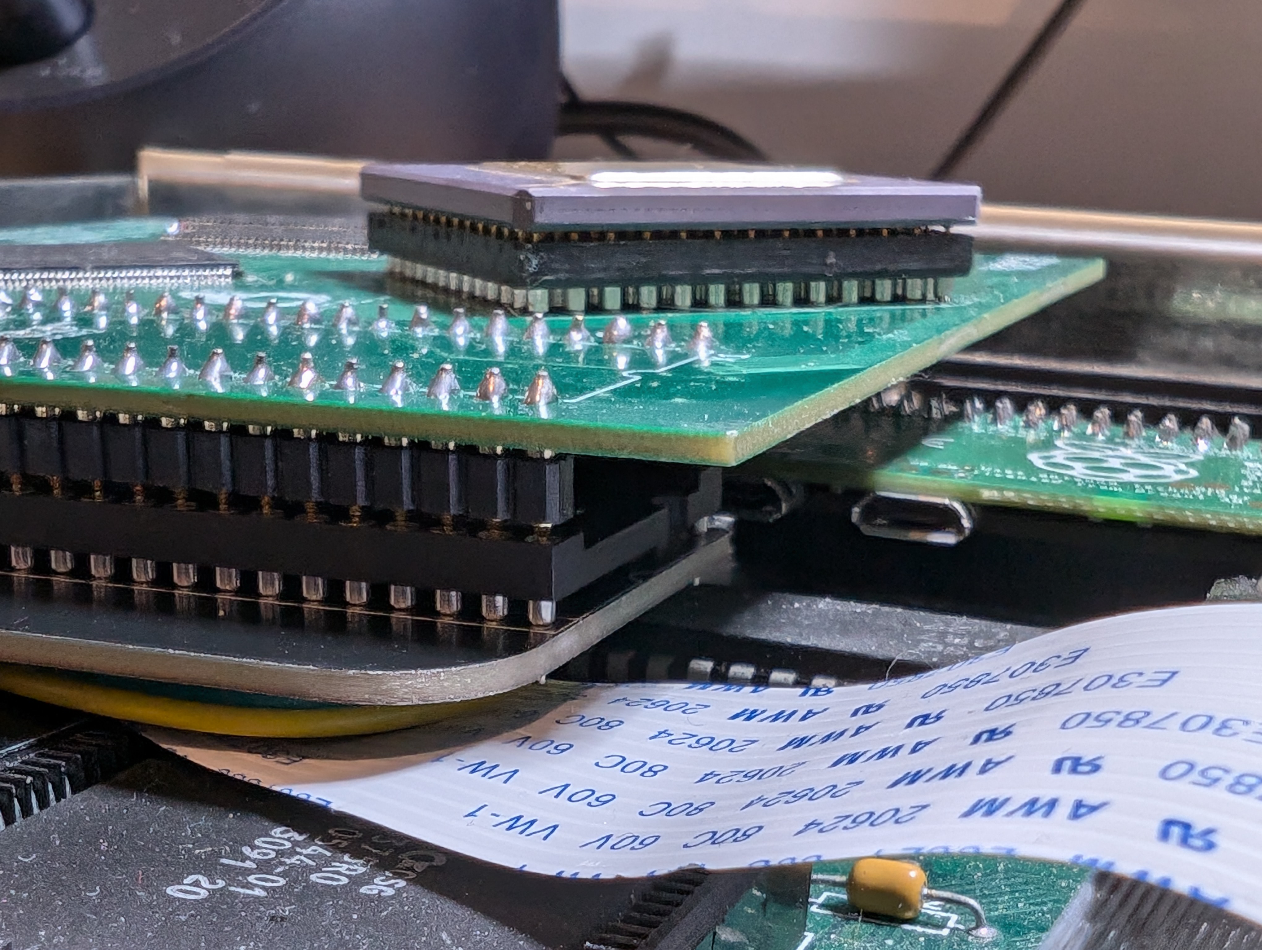 There are some old classics on the table, such as my ROMulus and RAMesses boards. But some brand new things too, I can finally reveal what they are.
