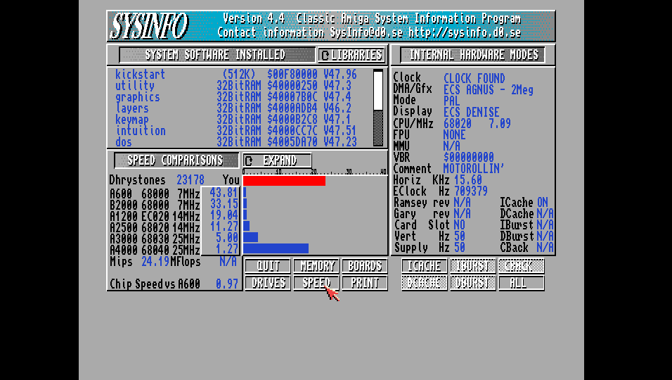 Just how fast is it? The first screenshot is Emu68 (release builds, debug builds are roughly 1/4 speed), the second is Musashi.
