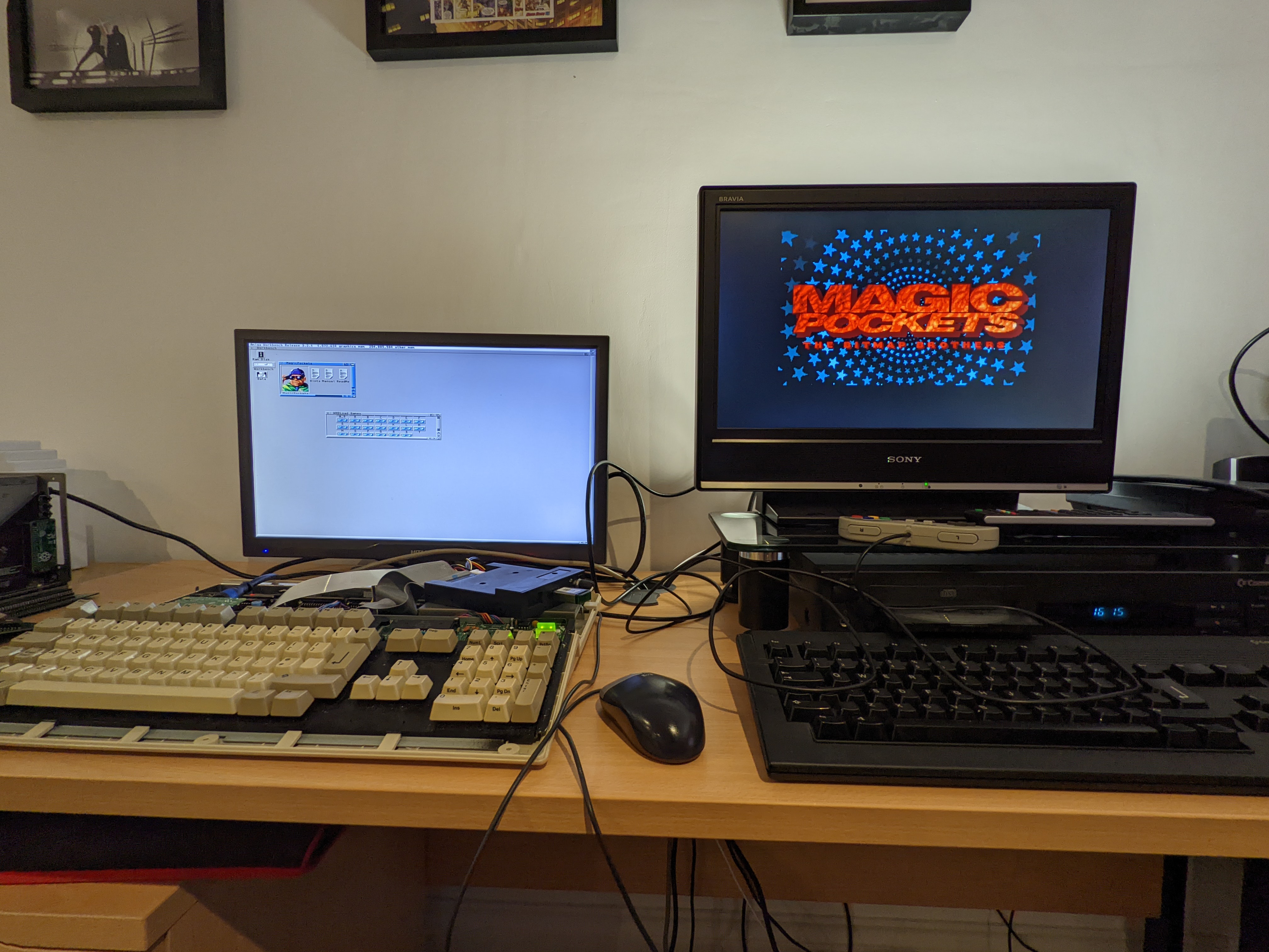 My hardware test setup for this blog post can be seen below, an Amiga 500 Plus with a PiStorm and a prototype RGBtoHDMI, left monitor is RTG and right monitor is Amiga’s RGB.