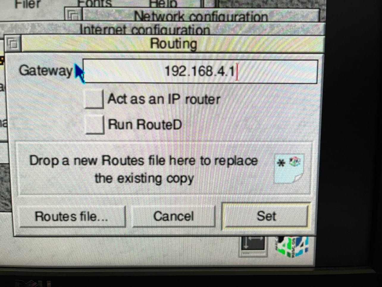 Getting networking to run on this is a little tricky in today’s world of “it just works” network connections, although I believe it is easier on my RiscOS 4 ROMs than on 3.x.