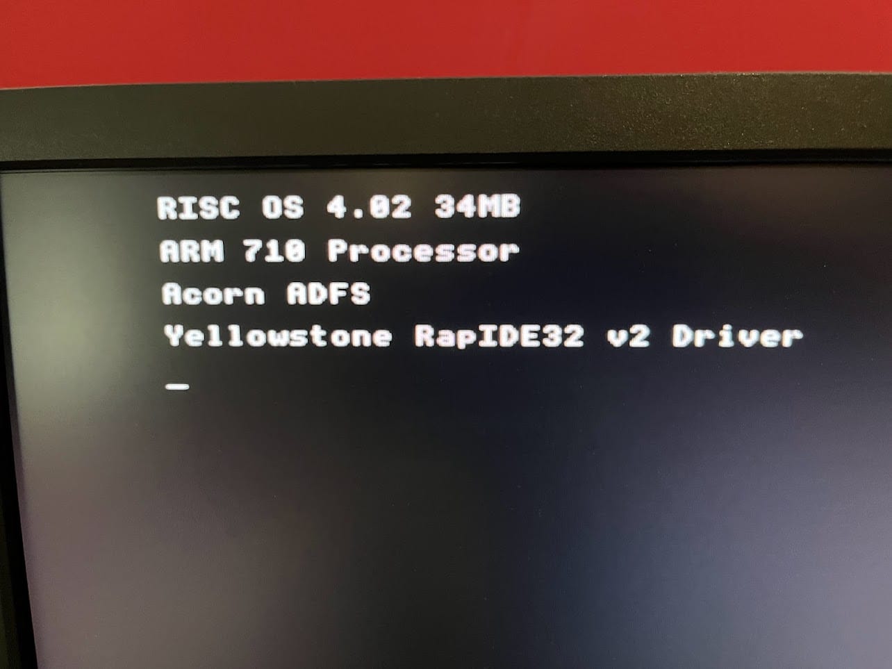 When I put this back in the RiscPC it booted to show 34MB RAM (32MB SIMMs and 2MB VRAM). Success!