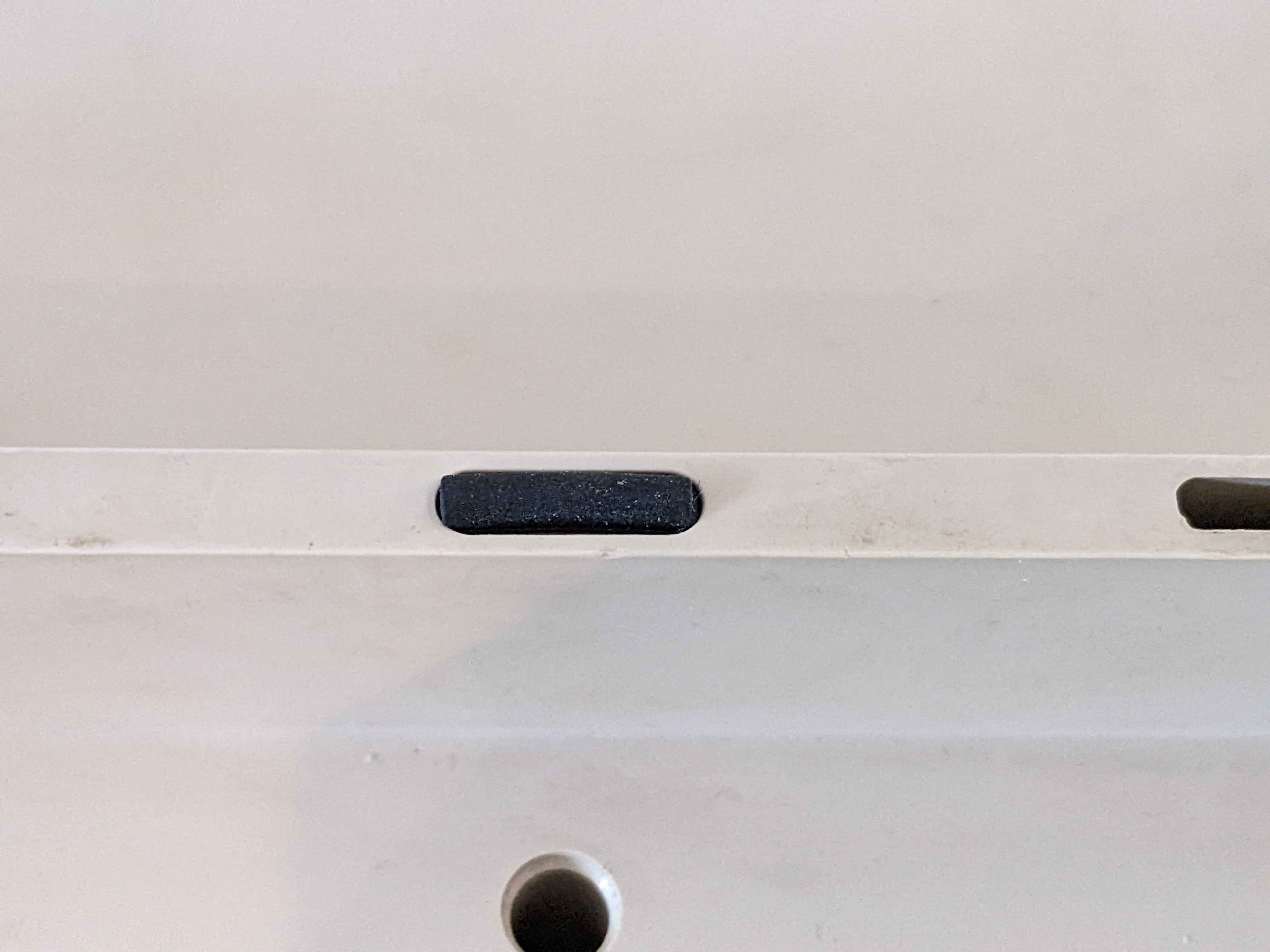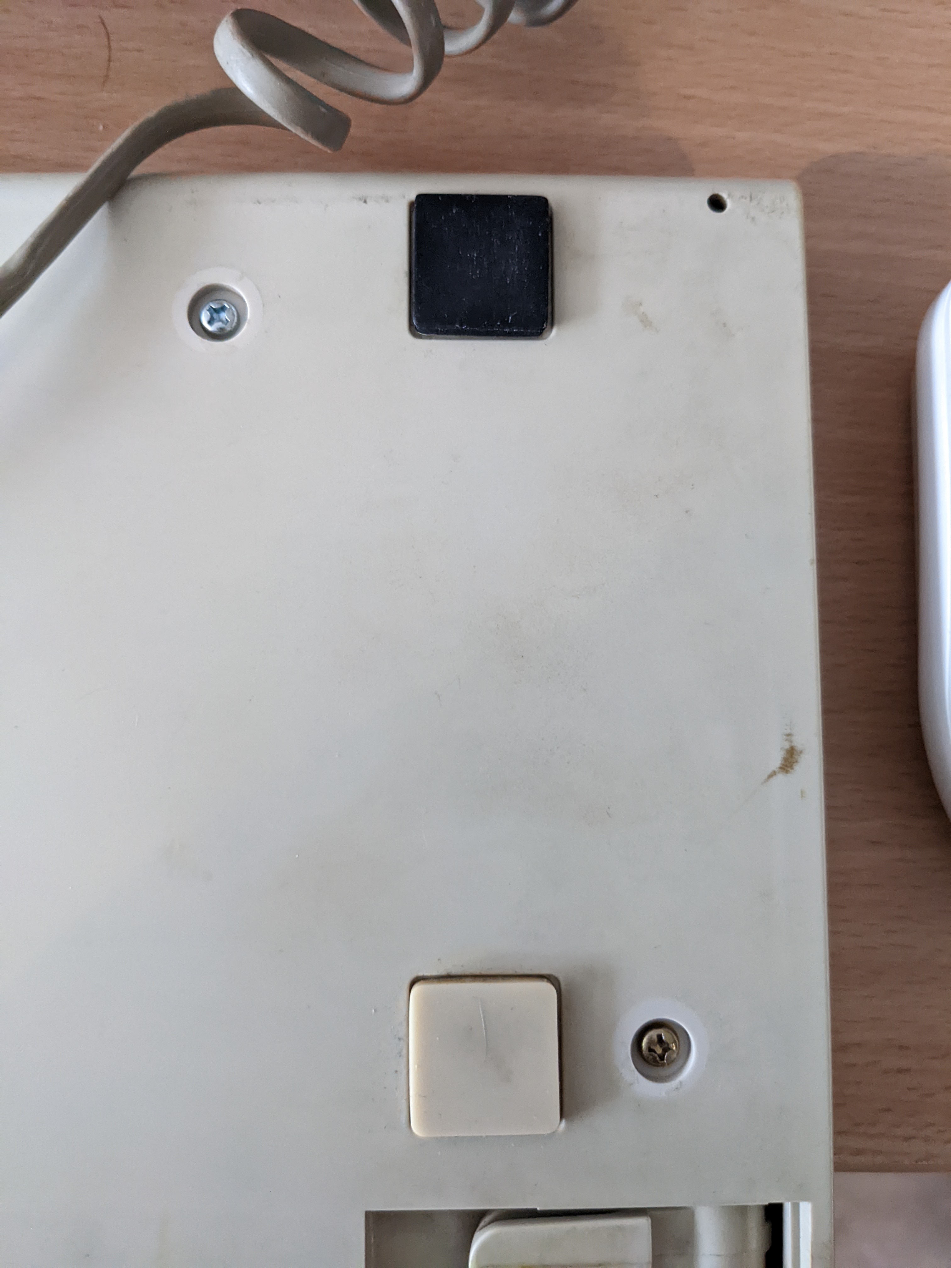 The first issue here is the keyboard, it only has three rubber feet on it, one is missing. These are 18mm x 18mm x 3mm squares. I managed to find some on eBay, unfortunately they are black instead of white, but are a perfect fit. No more wobble when using the keyboard! I’ll keep the original white ones at the other three positions but I have spares to swap them out as needed.