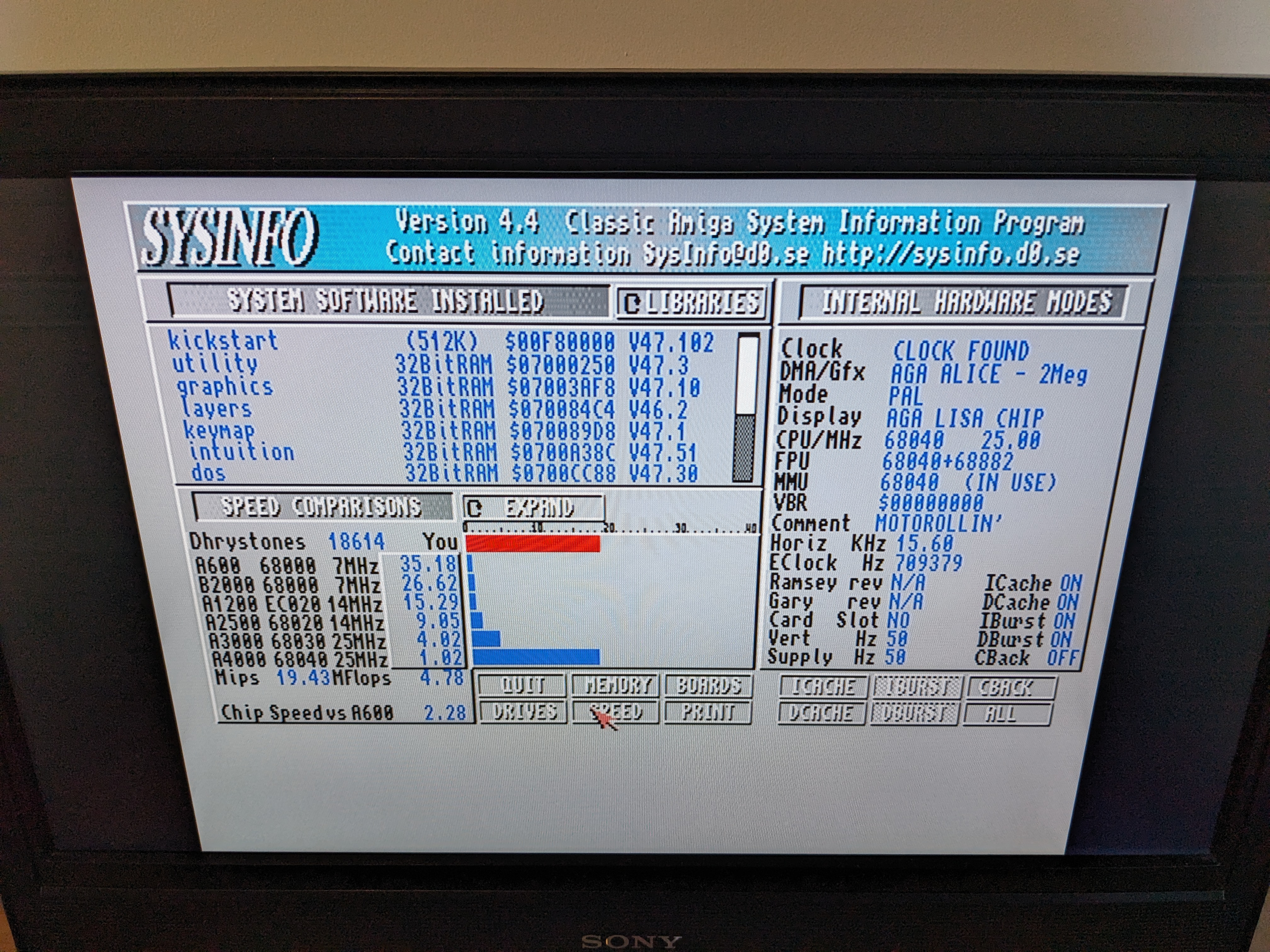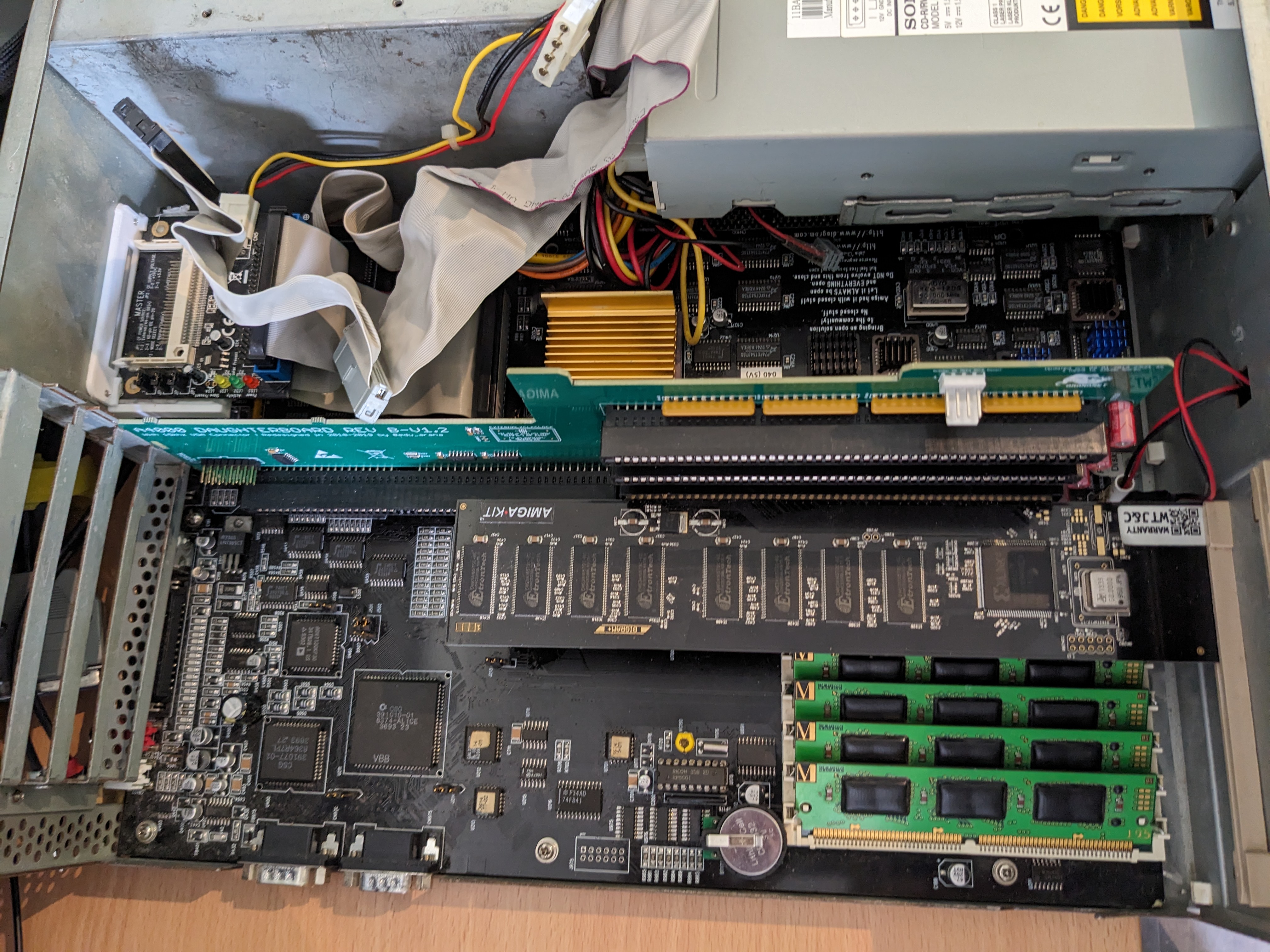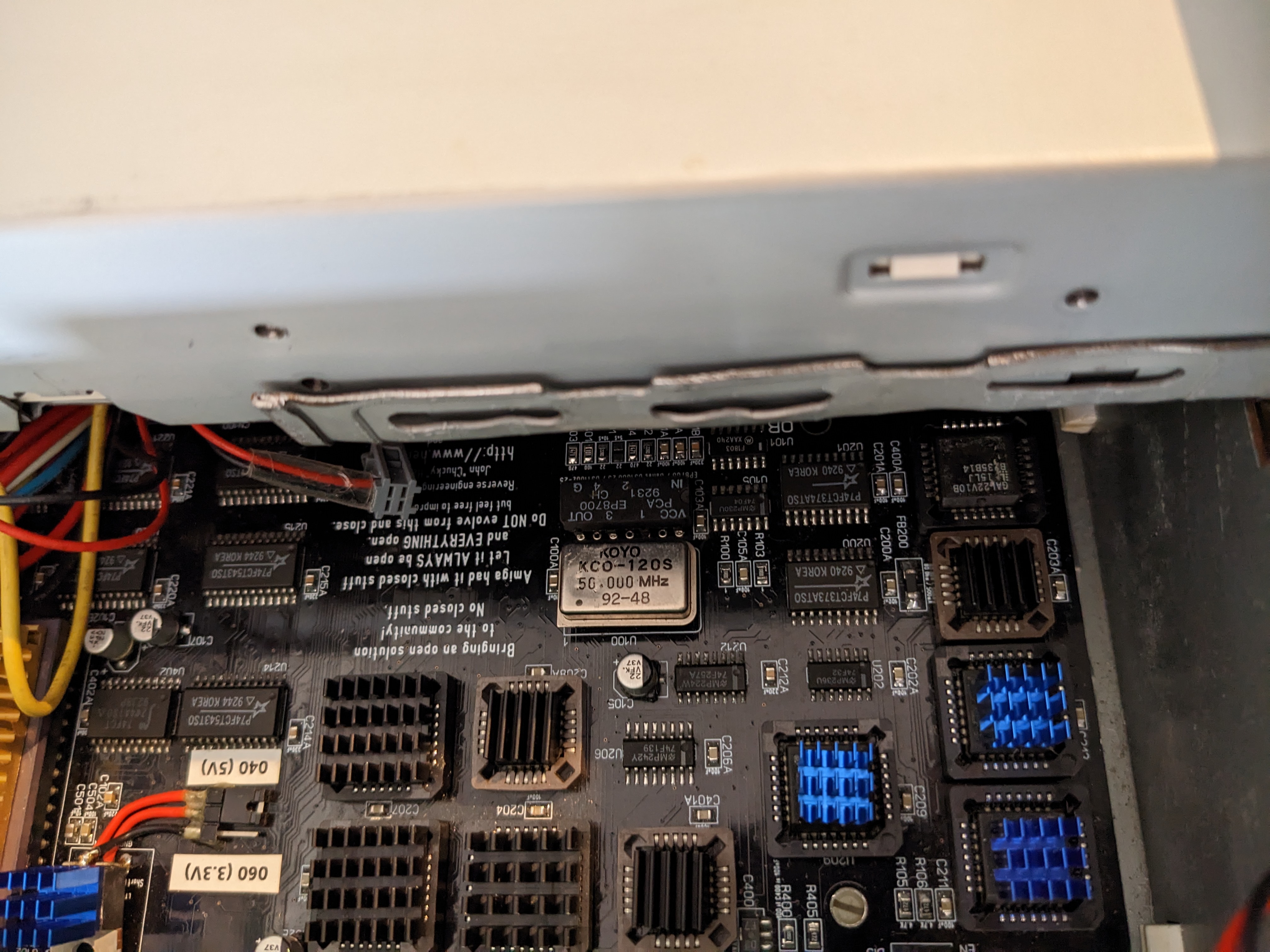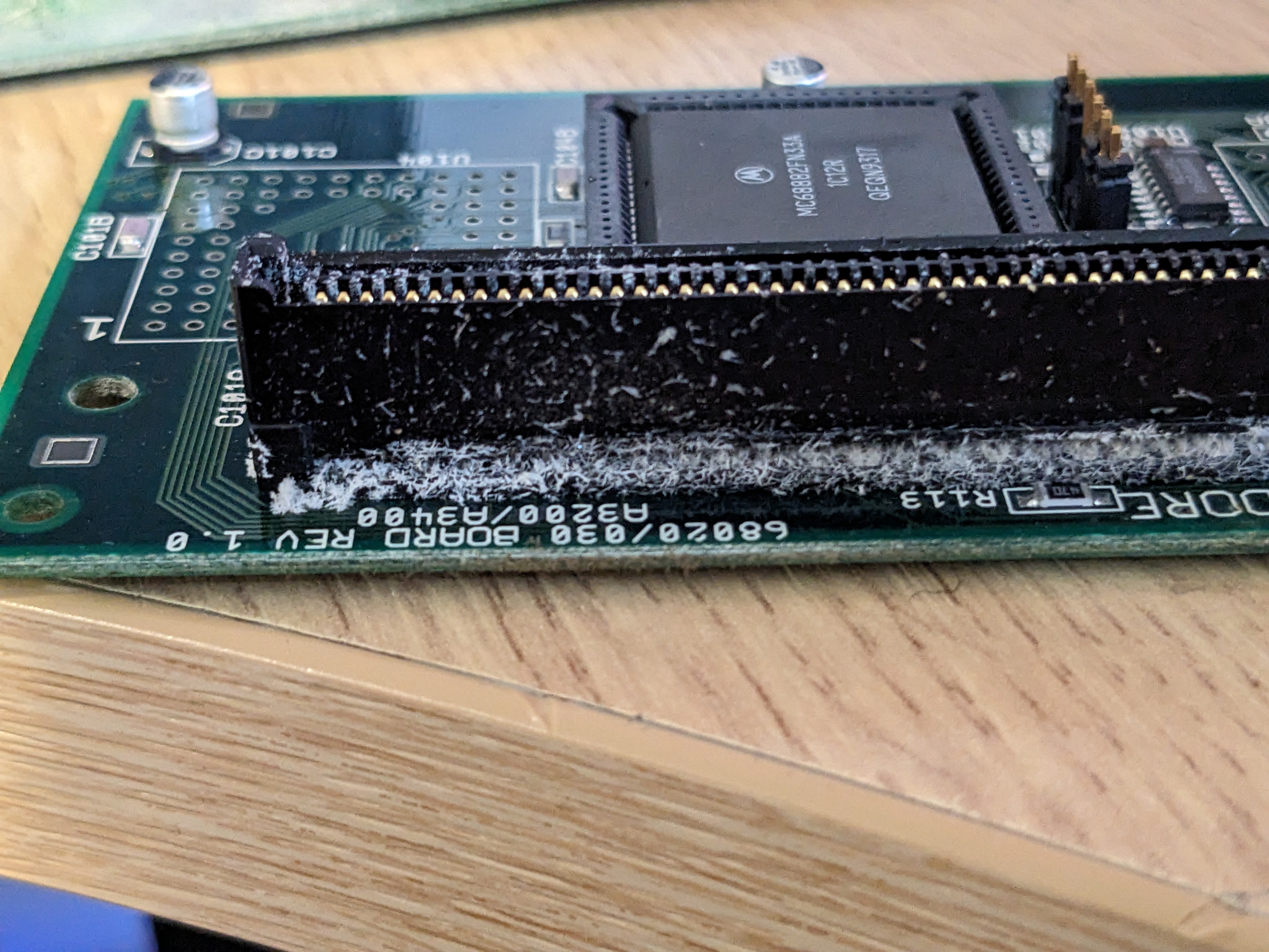 The first Amiga 4000 I received actually uses replica PCBs. It has a 68040 CPU board (despite the 68060 case badge) and a 256MB of Fast RAM board. It works out of the box. But still requires some restoration. Why? The case is in a bad state.