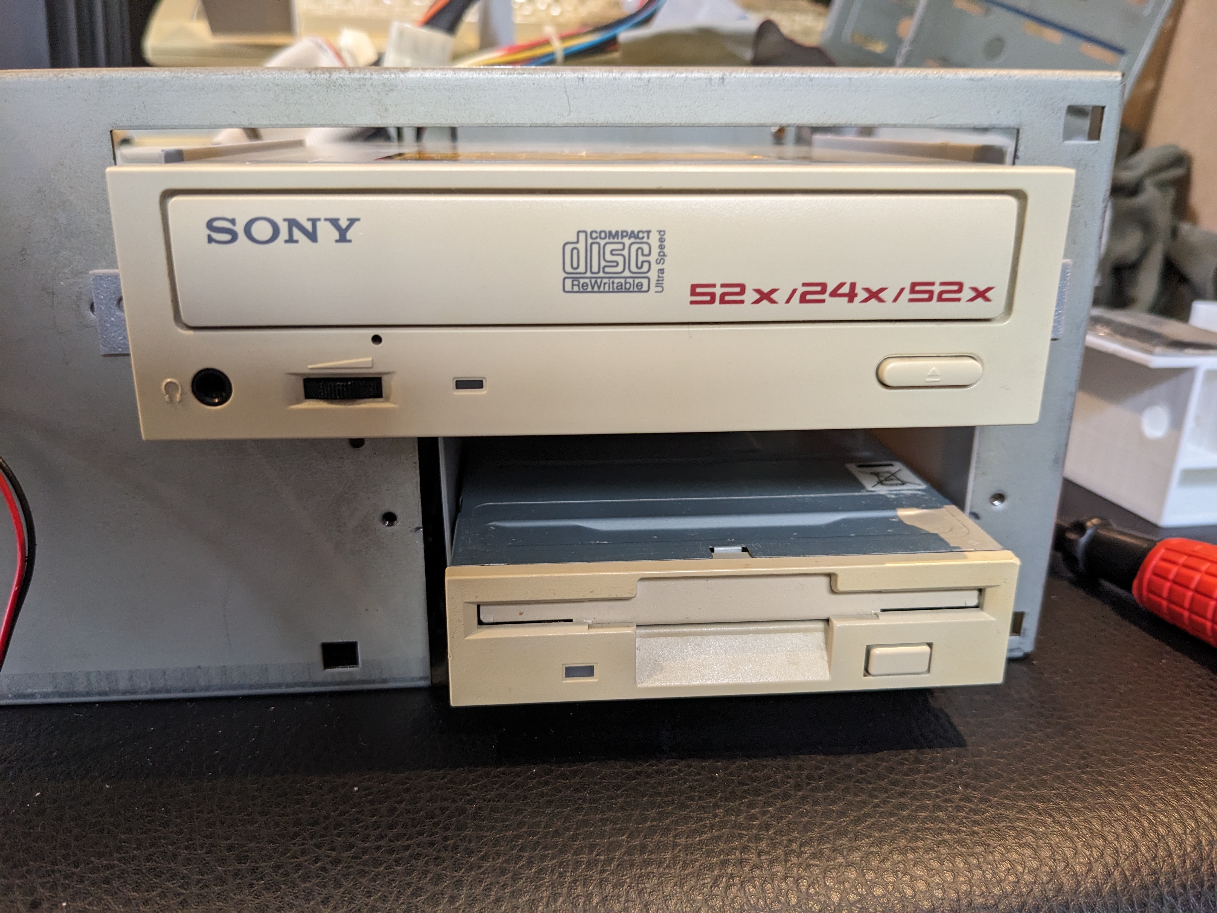 The drive cage is a bent piece of metal from what, I assume, is a PC drive cage. This is not what the original looks like. As such, the drives do not fit very well.