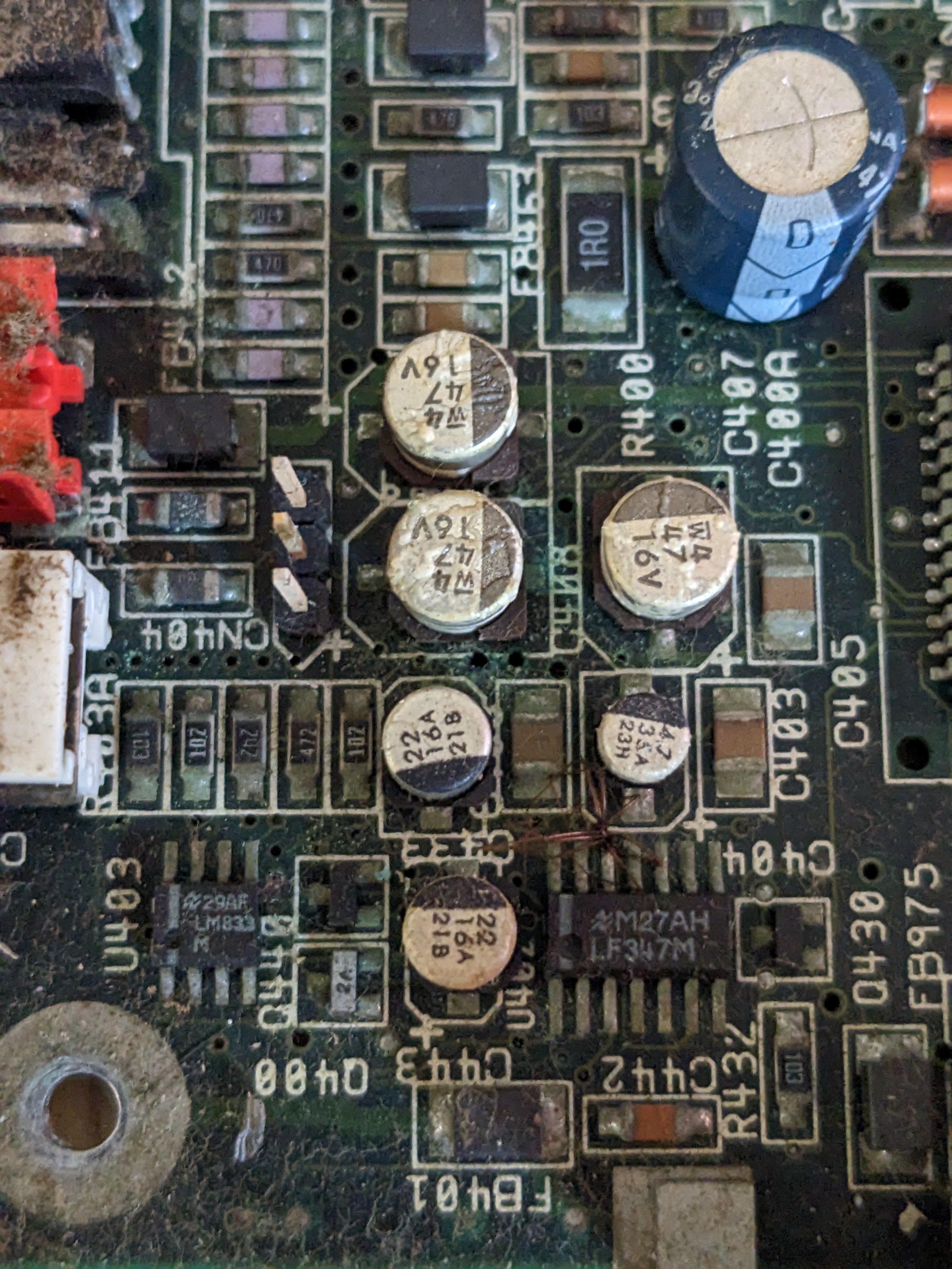 Is that mould, or capacitor leakage? Who knows, but it is going to need cleaning up.