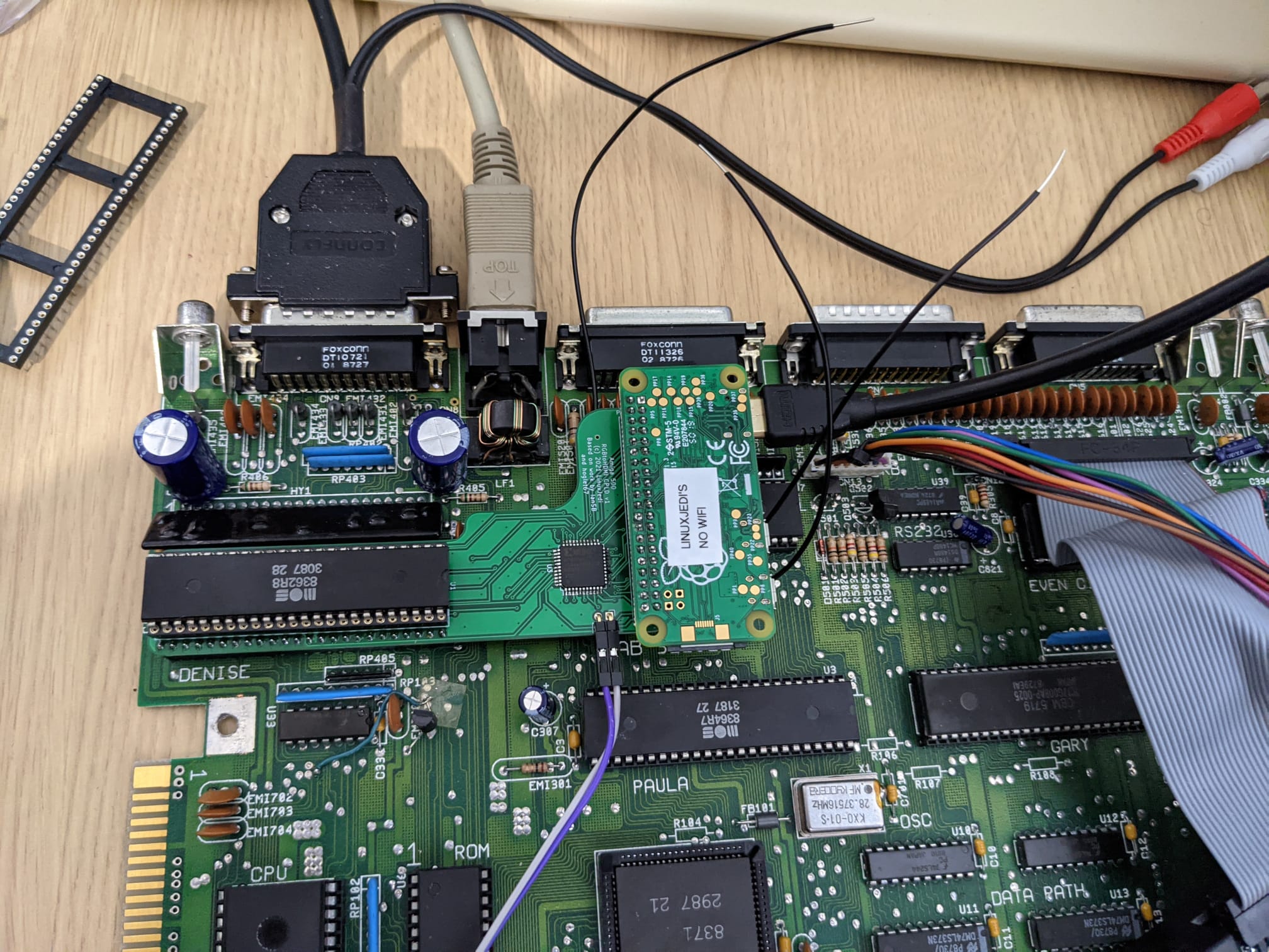 But, there are down sides to this design. First of all physically the adaptor locates the Pi in such a place that it makes it very difficult to use an accelerator such a TF536. More importantly every Amiga appears to have slightly different timings. This has caused users to have a sparkling effect in some areas of the screen as the pixel clock is ever so slightly out of sync. This issue was further complicated when there were attempts to relocate the Pi and therefore making some of the connections from the logic to the Pi slightly longer, almost guaranteeing there will be issues.