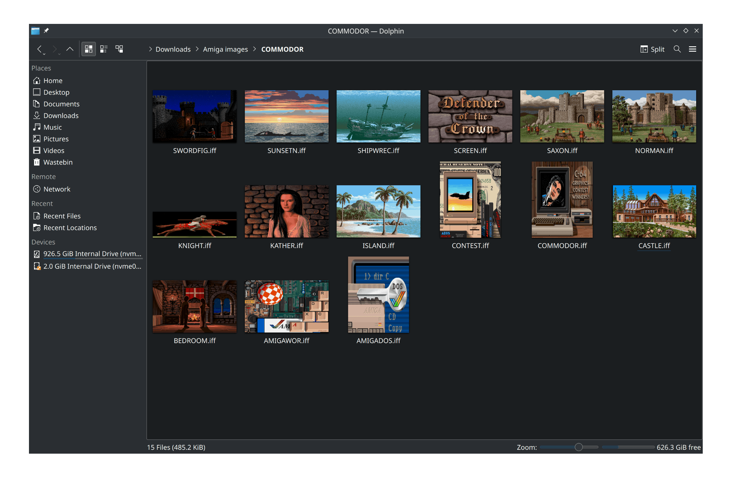 MimeType=image/x-ilbm;This will usually require you to log out and log back in again for the files to be discovered. After this, thumbnails of your Amiga files should work!