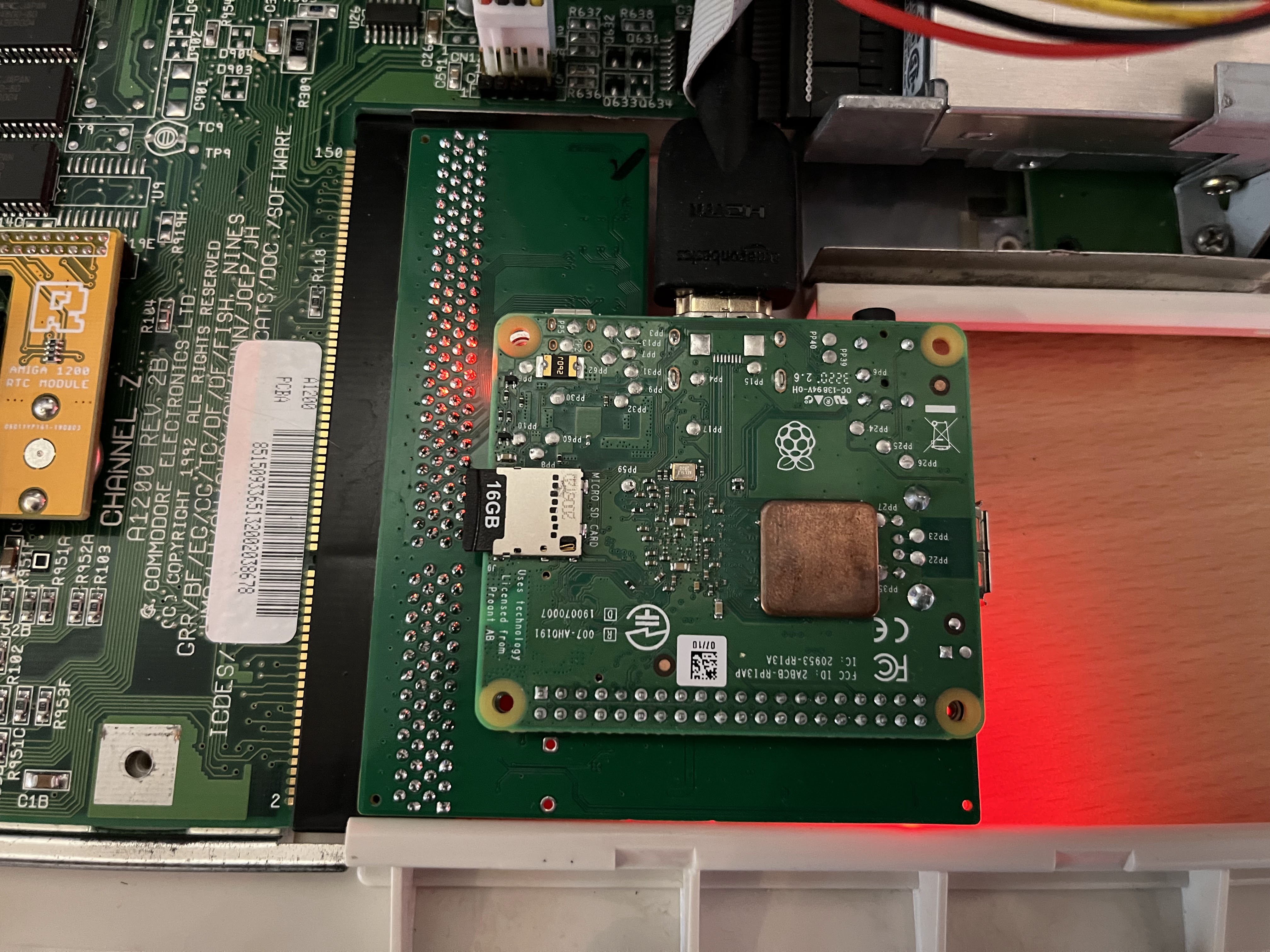 Once the design files were released to public, many people immediately went to order the SMD assembled PCBs from JLCPCB. To make things more compact so that it fits inside the Amiga 1200 a compact header is used with which the Pi slots through the PCB and into the connector.